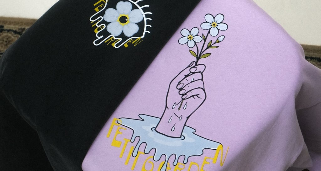 Les fleurs ont leur propre langage, Petit Garden met en avant cet univers en mélangeant la délicatesse de celui-ci avec des motifs couleur pastel et les coupes confortables du street wear.